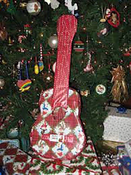 Parfois, il est amusant d’envelopper un objet de forme unique, comme une guitare ou un kayak, avec un travail serré qui montre la forme exacte du cadeau à l’intérieur.