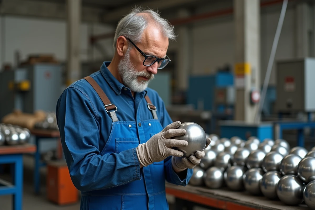 Pour ce faire, un moulin à billes spécial est utilisé pour polir la sphère en projetant des petites billes (grenaille) sur sa surface. La pression et la vitesse sont réglables pour obtenir une finition parfaite.