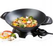 Riche en arôme, en saveur et en nutriment, les fruits de mer sont des aliments très recommandés. Vous pouvez préparer les poissons et fruits de mer en les faisant sauter ou frire dans le wok ou encore préparer des plats plus recherchés comme les calamars au soja et à l’estragon ainsi que les nouilles aux légumes et gambas. Une composition crevettes sautées et légumes au wok est un régal. Parfait pour un repas convivial en famille. En effet, la cuisson se déroule directement sur la table alors l’hôte peut en même temps discuter avec sa famille. Tout le monde échange et s’il se passe un événement inattendu lors de cette préparation, tout le monde peut réagir et cela entretient la conversation. Une bonne manière de ne jamais faire redescendre la température ! D’ailleurs, à ce niveau là, pas la peine de chauffer à fond la pièce, le wok électrique va vite réchauffer les convives.