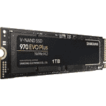 Le 970 Pro vise ceux qui veulent le haut du panier et sont prêts à y mettre le prix. Sa mémoire MLC de qualité supérieure garantit une longévité et des performances constantes, notamment en écriture aléatoire. Endurance : 600 TBW pour 5 ans de garantie.